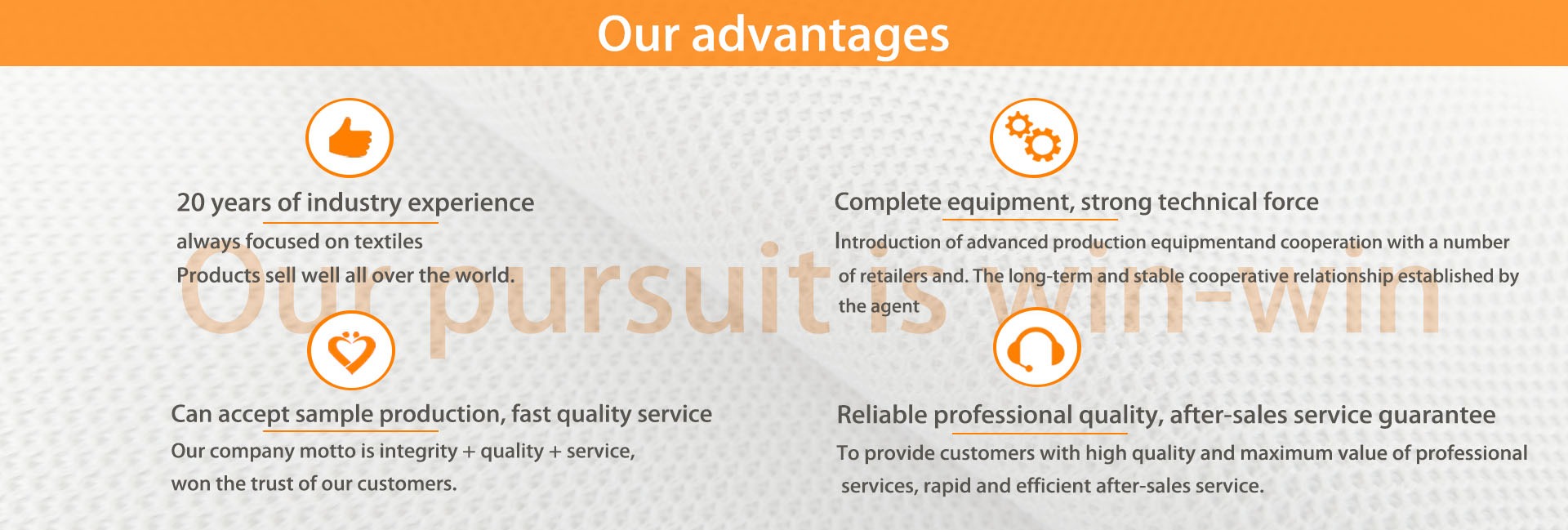 Dongguan Dexin company have 20 years of experience in design and development of textile, Our main business includes various types of textile fabrics, fabric printing, bags, mouse pads, floor mats, table mats, and other textile products.